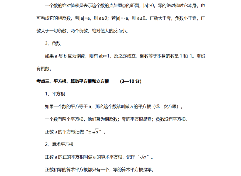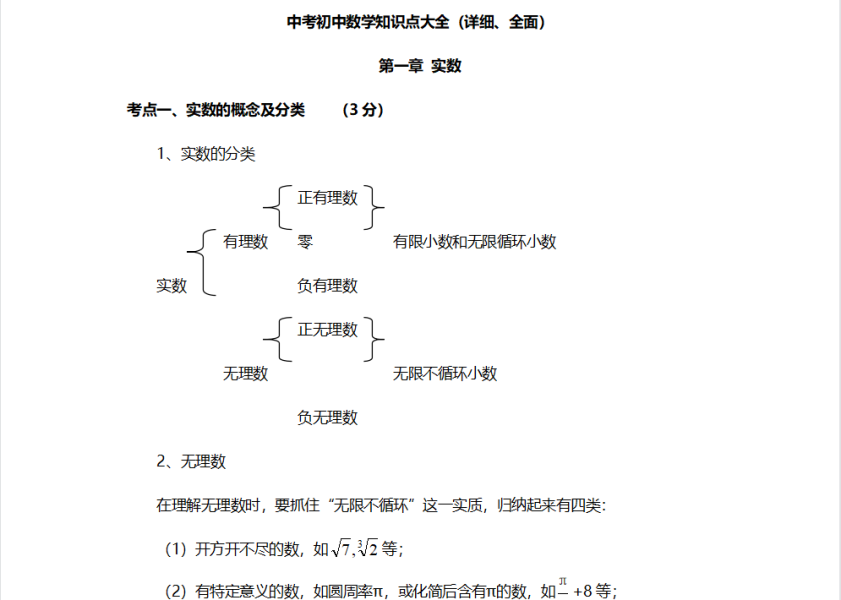 中考初中数学知识点大全(详细、全面)