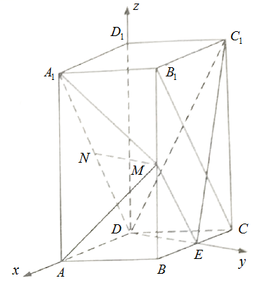 如图,直四棱柱ABCD–A1B1C1D1的底面是菱形,AA1=4,AB=2,∠BAD=60°,E,M,N分别是BC,BB1,A1D的中点.