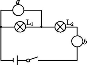 3.B [解析]由图可知,a与灯泡L1并联,所以a应为电压表;b串联在电路中,所以b应为电流表,此时电流表测量电路中的电流,电压表测量L1两端的电压。