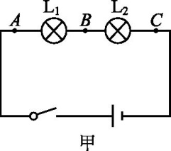 (2)把电压表接在图甲中A、B间,UAB=3V,说明A、B两点外的电路是通路,把电压表接在B、C间,UBC=0V,说明B、C两点外的电路有断路;把电压表接在A、C间,UAC=3V,说明A、C两点外的电路是通路,所以故障可能是L1断路。