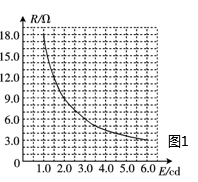 光敏电阻的阻值随光照射的强弱而改变。“光强”是表示光的强弱程度的物理量,照射光越强,光强越大,光强用符号E表示,国际单位为坎德拉(cd)。实验测得光敏电阻的阻值R与光强E之间的关系如图1所示。