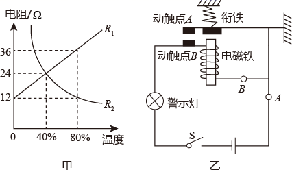 ①选择图甲中的______(选择“R1”或“R2”)湿敏电阻,将它串联在图乙电路中的______(选择“A”或“B”)位置,闭合开关,警示灯能随湿度变化而自动调整亮度,且不断闪烁。