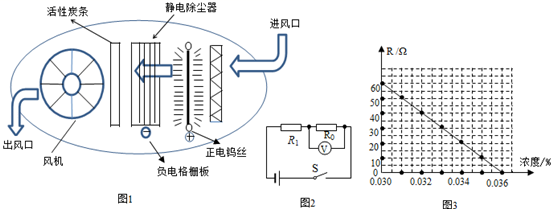 15.某一空气净化器工作过程如图1所示:空气进入净化器,空气里的灰尘由于钨丝放电而带上正电,经过负电格栅板时被吸附;此后经活性炭进一步净化。