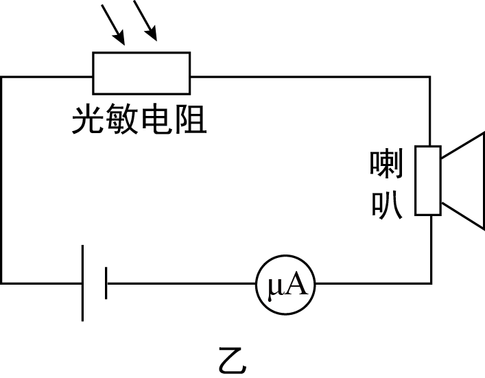 (4)如图乙为光敏电阻的工作原理图,当光照强度发生变化时,小量程电流表的示数变化如图______。