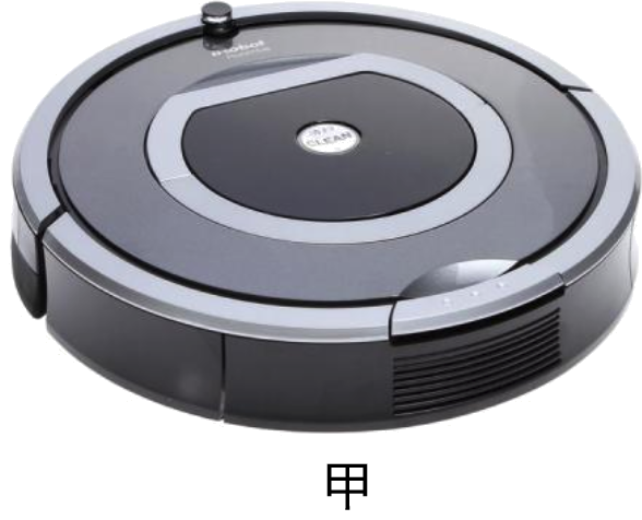 如图甲所示为一款能自动清扫地面的扫地机器人。机器人通过电动机旋转产生高速气流,将灰尘、杂物吸入集尘盒;其防滑轮皮采用凸凹材质制成;底部安装有塑料刷,用于清扫吸附在地板上的灰尘及轻小物体;前端装有感应器,通过发射、接收超声波或红外线来侦测障碍物。当剩余电量减为电池容量的20%时,机器人会主动寻找充电器充电。表一为某扫地机器人的部分参数。电池容量指放电电流与放电总时间的乘积。