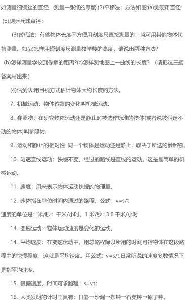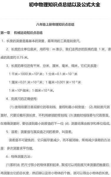 初中物理知识点总结以及公式大全(一轮复习专用)