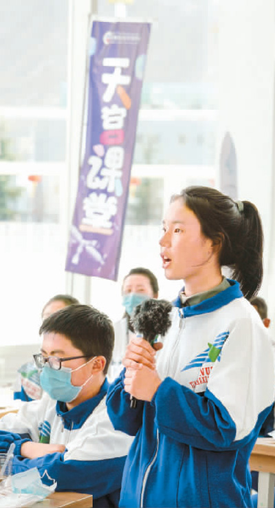3月23日,位于“天宫课堂”西藏拉萨地面分课堂的学生向航天员老师提问。 |