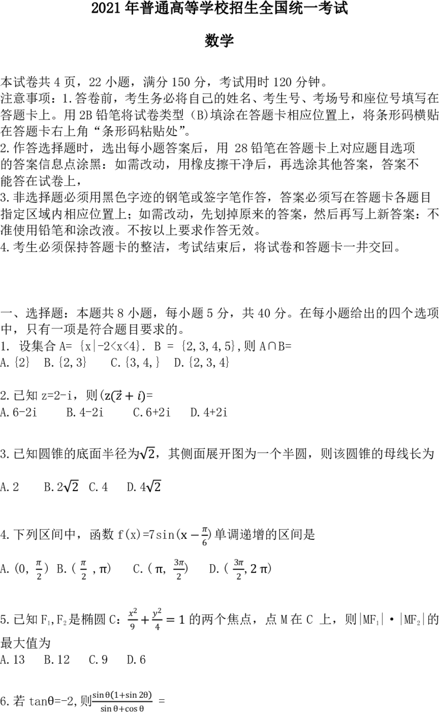 2021高考数学真题新鲜出炉新高考一卷
