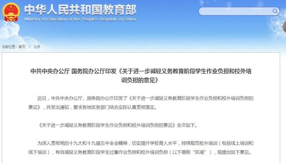 近日,中共中央办公厅、国务院办公厅印发了《关于进—步减轻义务教育阶段学生作业负担和校外培训负担的意见》,要求减轻学生课业负担,全面规范管理校外培训机构,意见的出台旨在为学生全面减负,促进学生德智体美劳全面发展。为学生减负,叫停教育机构在寒暑假为学生补课,文件的下达,引起了社会广泛关注和热议。
