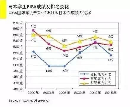 ▲日本自从实行宽松教育之后,日本学生在国际评估项目中这几年间排名急剧下降。