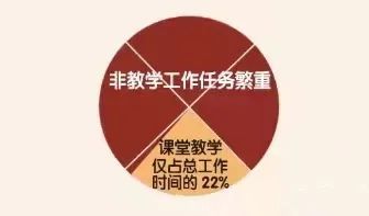 ▲ 统计显示,中国中小学教师每周课时平均为16节,因此每周教学时间为12小时,每周工作时间为54.5小时,从事课堂教学的工作时间仅占总工作时间的22%,非课堂教学工作任务繁多。