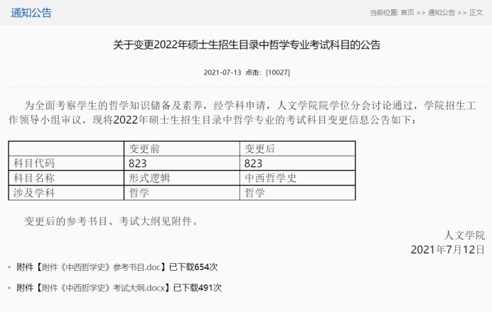 西安交通大学人文社会科学学院发布《关于变更2022年硕士生招生目录中哲学专业考试科目的公告》。