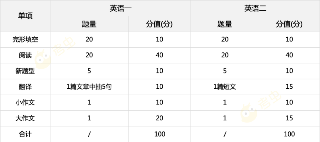 而研究近几年的英语大纲,我们能发现,考研英语的 试卷结构、题型、题量、分值都没有变动过,所以今年大概率也不会有变化。