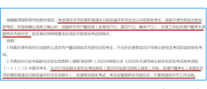非天津户籍还是往届生的话,报名要求就更多了。如果身份资格不符合的话,即使确实是在当地工作,也是无法报考的。所以并不是当前在哪里生活就一定能在当地考试。