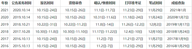 历年国家公务员考试时间安排