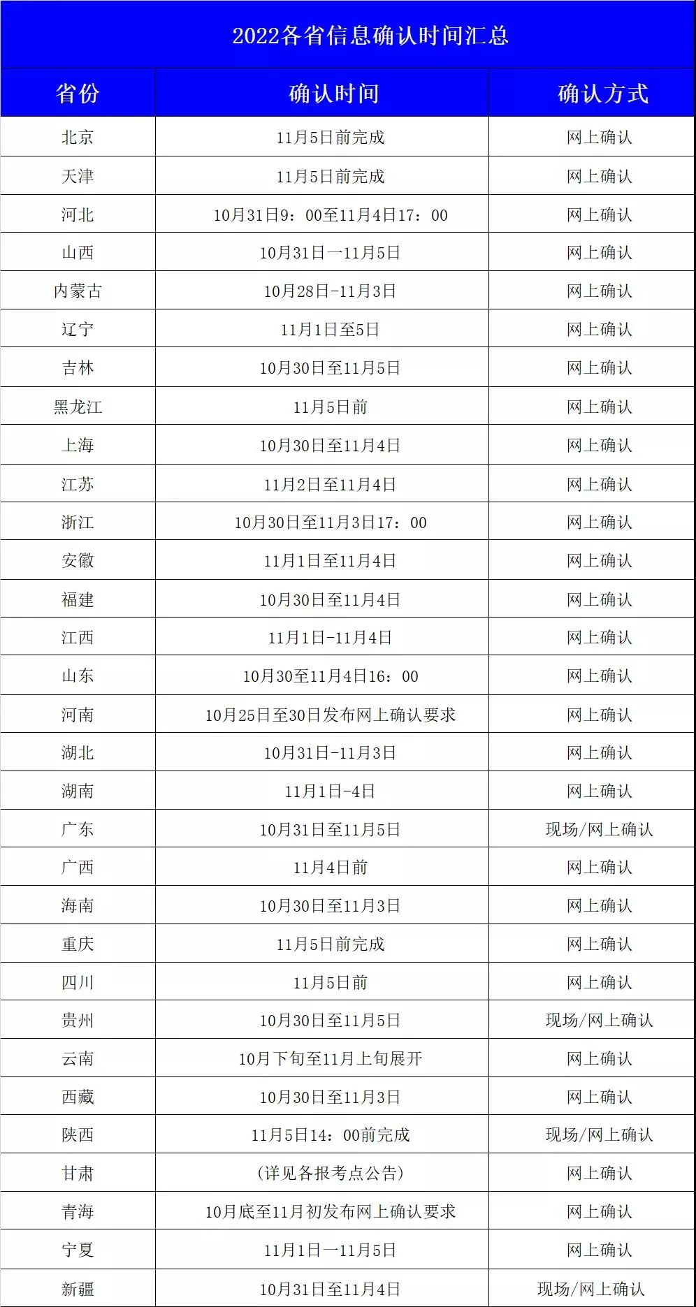 各省市确认时间及方式