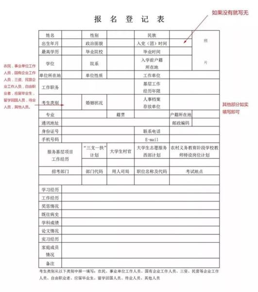 也就是说,《报名登记表》所有人都需要填写,而《报名推荐表》只有普通高等院校应届毕业生填写就可以了。填写《报名登记表》和《报名推荐表》,必须真实、全面、准确。主要信息填报不实的,按弄虚作假处理;信息填报不全导致未通过招录机关资格审查的,后果由报考人员自负。