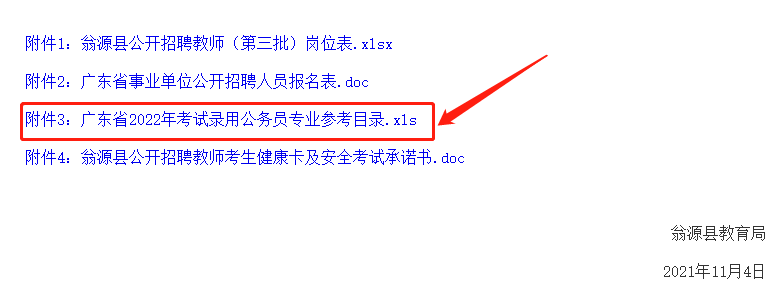 11月4日,翁源县教育局发布了翁源县公开招聘教师(第三批)公告,其中明确本次编制内人员招录按照《广东省考试录用公务员专业目录(2022版)》进行专业设置。如下: