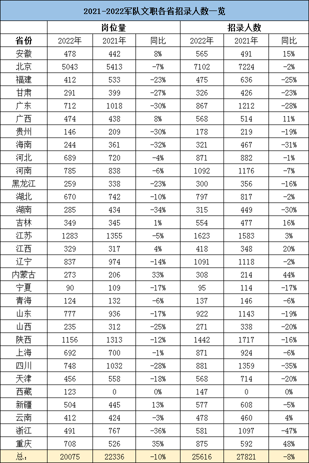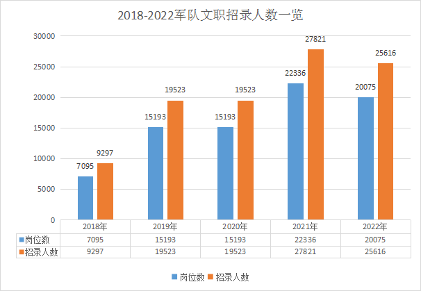 一、2022年军队文职招录人数及岗位数双降 竞争压力骤增加!