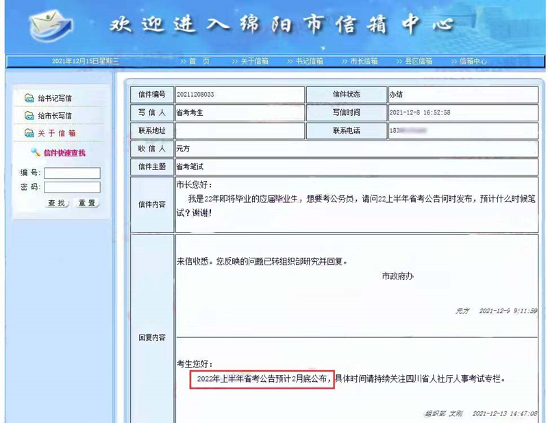 2022上半年四川省考最新消息!近日,有考生在绵阳市长信箱咨询2022上半年四川省考时间,官方回复:2022上半年四川省考公告预计2月底公布。详情如下↓↓↓