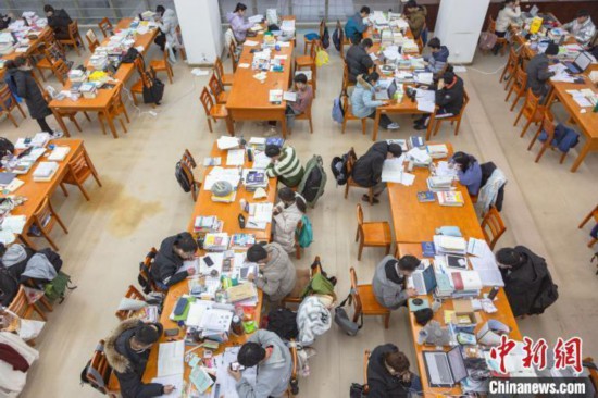资料图:南昌大学图书馆自习室内,考生正在紧张复习。