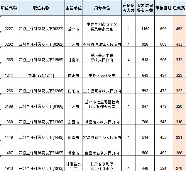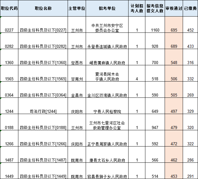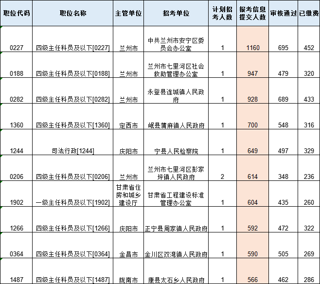 截止3月3日17时,2022年甘肃公务员考试共有89594人提交报名,63493人通过审核,41062人缴费,10个岗位无人报考