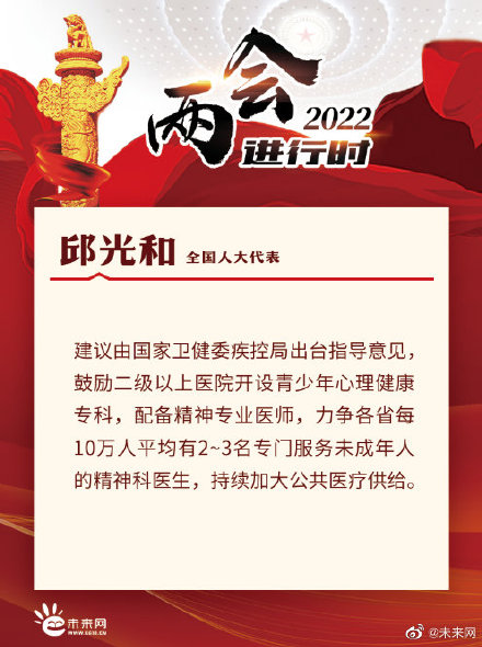 未来网记者注意到,已有不少代表委员就青少年健康成长话题建言献策,内容涉及未成年人心理健康、防止未成年人沉迷网游等方方面面。