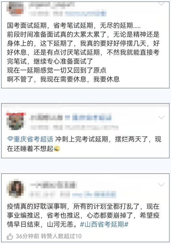 省考延期打乱了大家本来的计划,很多人之前一直紧绷的弦听到延期后就绷不住了,想要休息下。